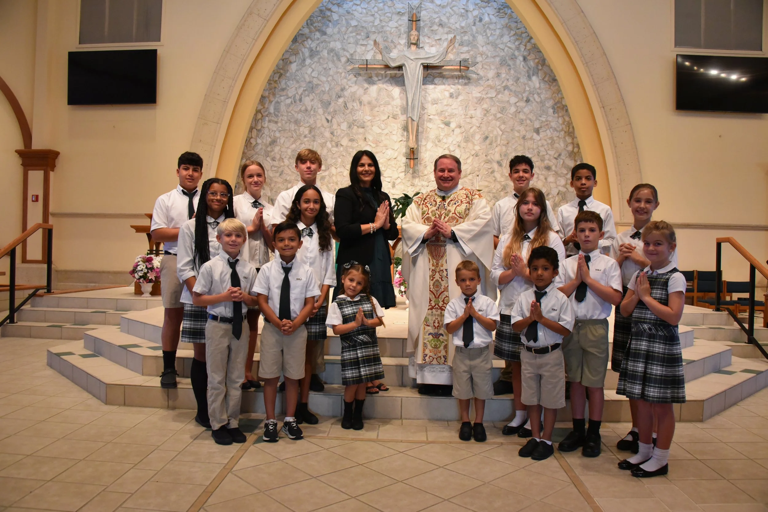 Religious instruction in the Christian faith, as lived out in the Catholic tradition, forms the basis for the total development of the student. All students are required to participate in all regular church services during school time. The Religion curriculum from the Diocese of Orlando forms the nucleus of Religious instruction. Liturgical Services are held weekly and on Holy Days for the entire student body and staff. Parents and family are welcome.